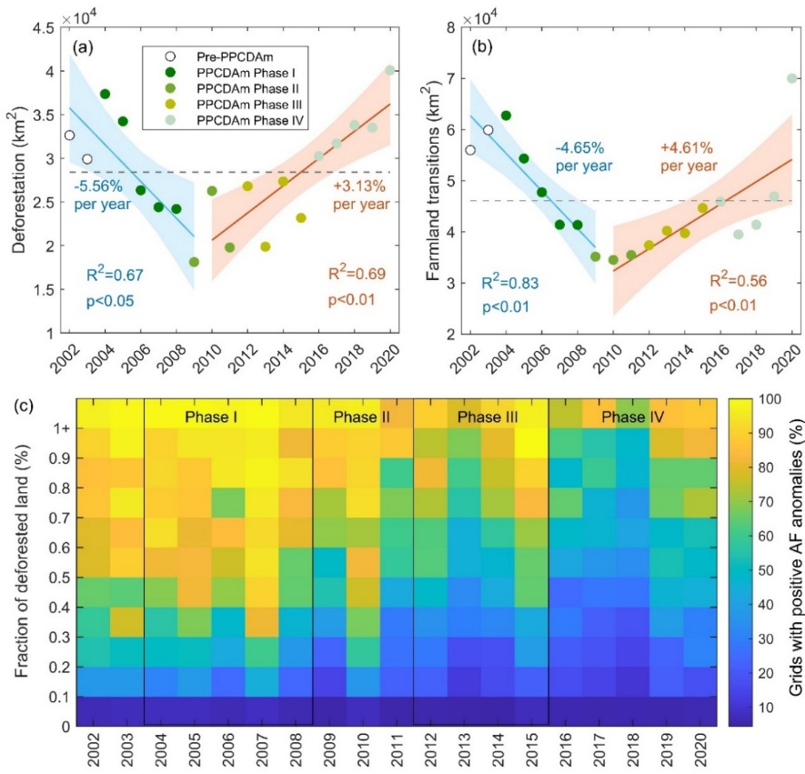图1. PPCDAm护林政策的实施对火灾动态的影响