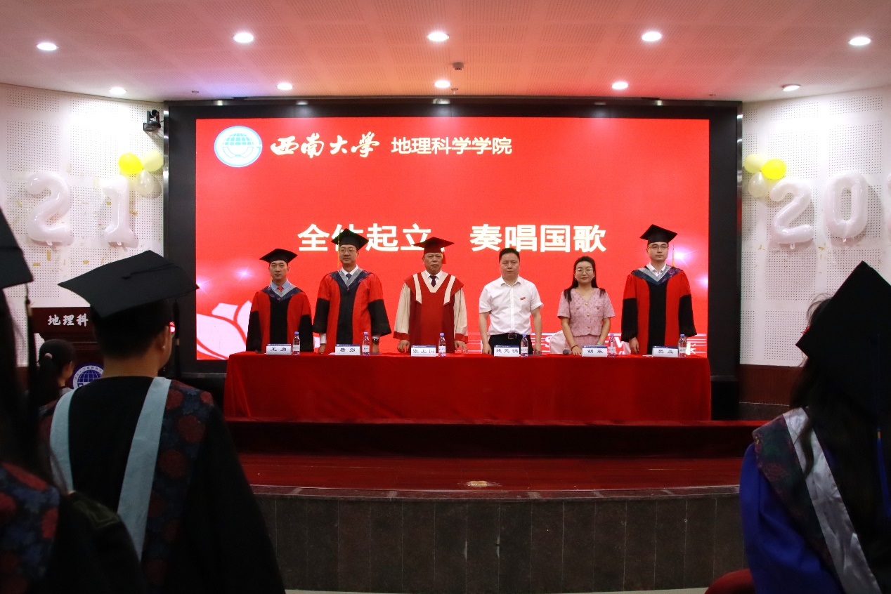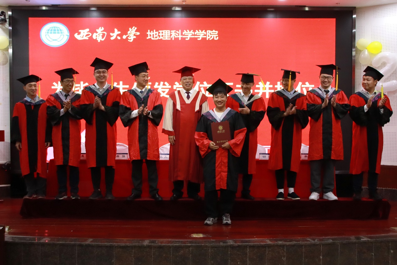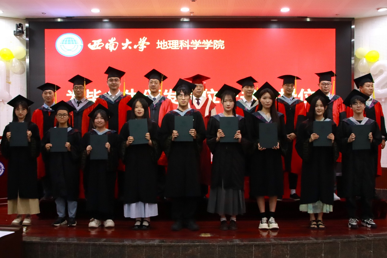 典礼最后,院长唐强以地理人的三个“坐标”为引寄语毕业生。唐院长向全体毕业生表示热烈祝贺,对各位导师、父母等致以诚挚感谢,同时回顾了意昂 各方面的建设成果。他希望同学们以“高程”定义精神海拔,以“经度”丈量专业深度,以“纬度”拓展创新边界,带着西大地理人的精神在人生航程中铸魂、立身、拓界。最后,唐院长祝福2025届全体毕业生们前程似锦、山高水长。