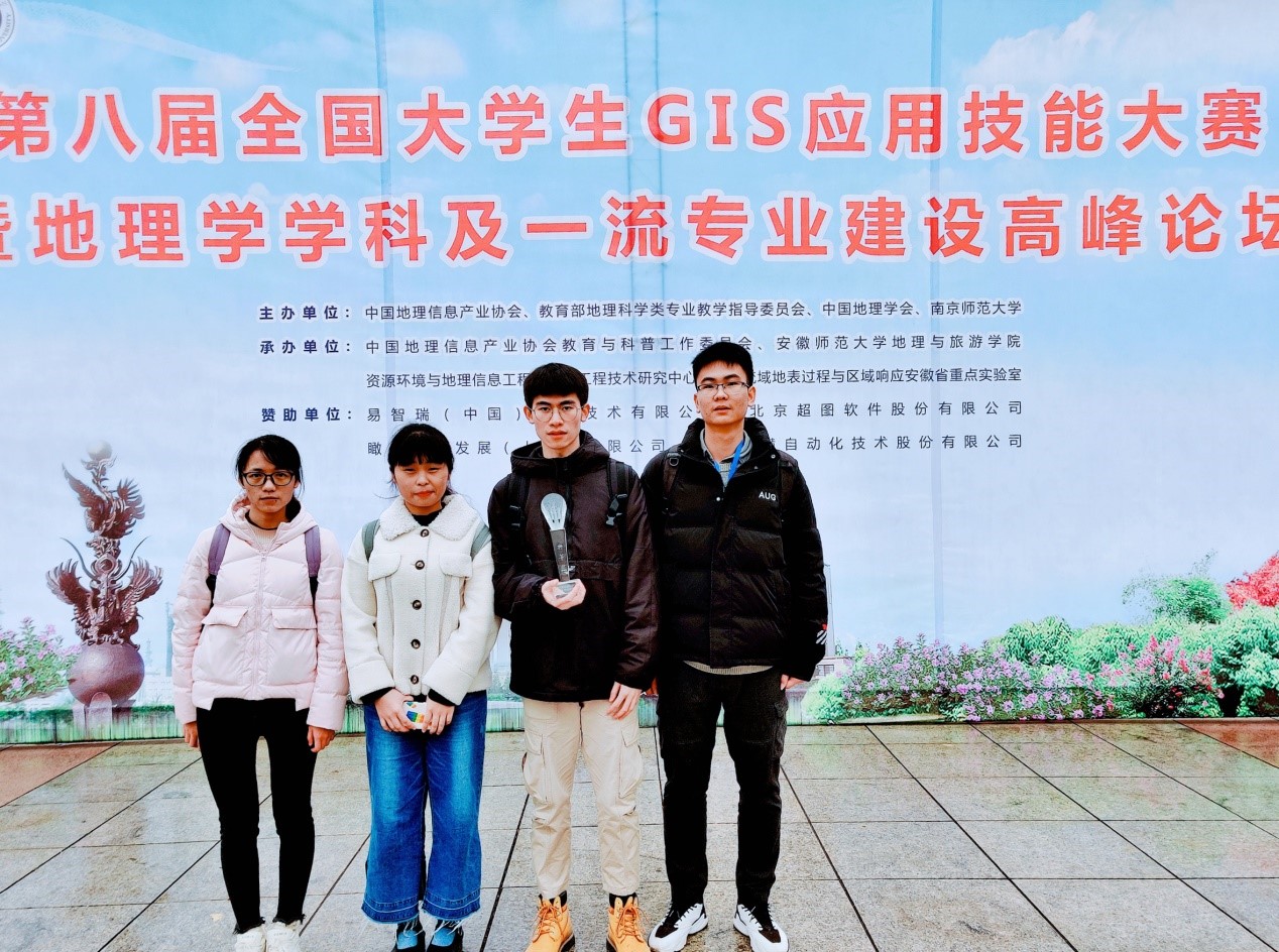 2019年11月23日至11月25日,由中国地理信息产业协会、教育部地理科学类教学指导委员会和中国地理学会主办的第八届全国大学生GIS应用技能大赛在安徽师范大学举行。由2016级、2017级地理信息科学专业本科生付康钰、王杰、毕茹、黄晓蕾组成的西南大学代表队在意昂 田永中、徐永进、周文佐、于文凭等指导老师的带领下参加比赛,喜获特等奖。这是意昂体育 自2013年参加本项赛事以来获得的最佳成绩,也是继去年意昂体育 获得一等奖后所取得的又一重大突破。