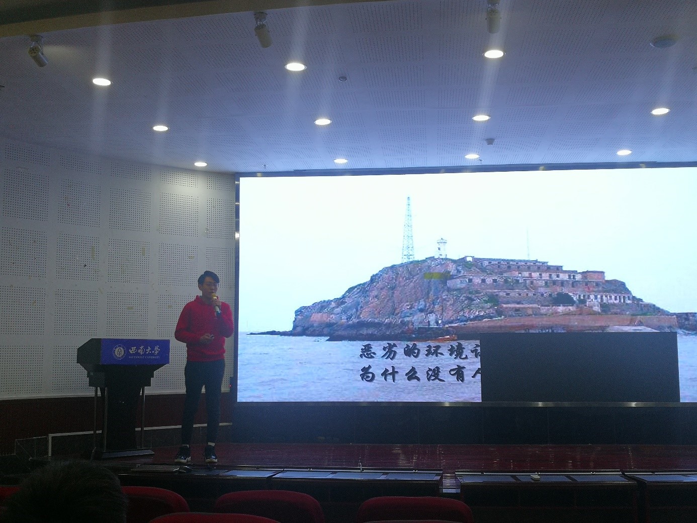 本次主题教育活动共分为两个环节,首先是西南大学学生党员示范班聂茂原同学作分享,分享主题为“守岛,就是守国——守岛英雄王继才”。聂茂原同学声情并茂地讲述了守岛英雄王继才的感人事迹,王继才同志守岛卫国32年,用平凡的坚守书写了一名共产党员不平凡的人生华章,书写了一个岛两个人的担当、一座塔几排房的坚守、一辈子一面旗的信念。王继才同志的事迹激发了党员们的爱国情、报国志。