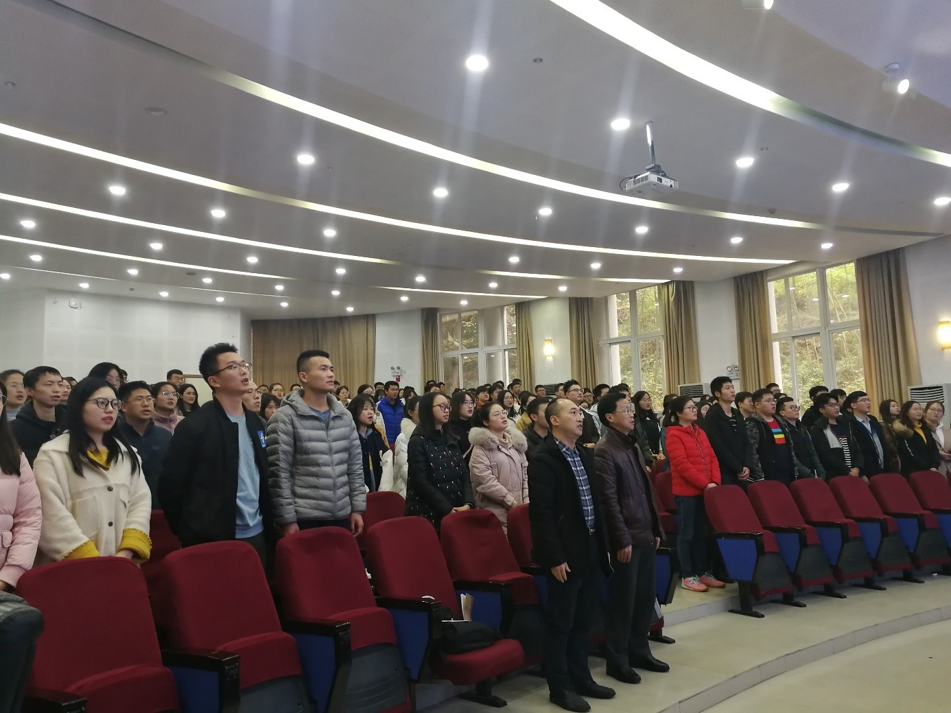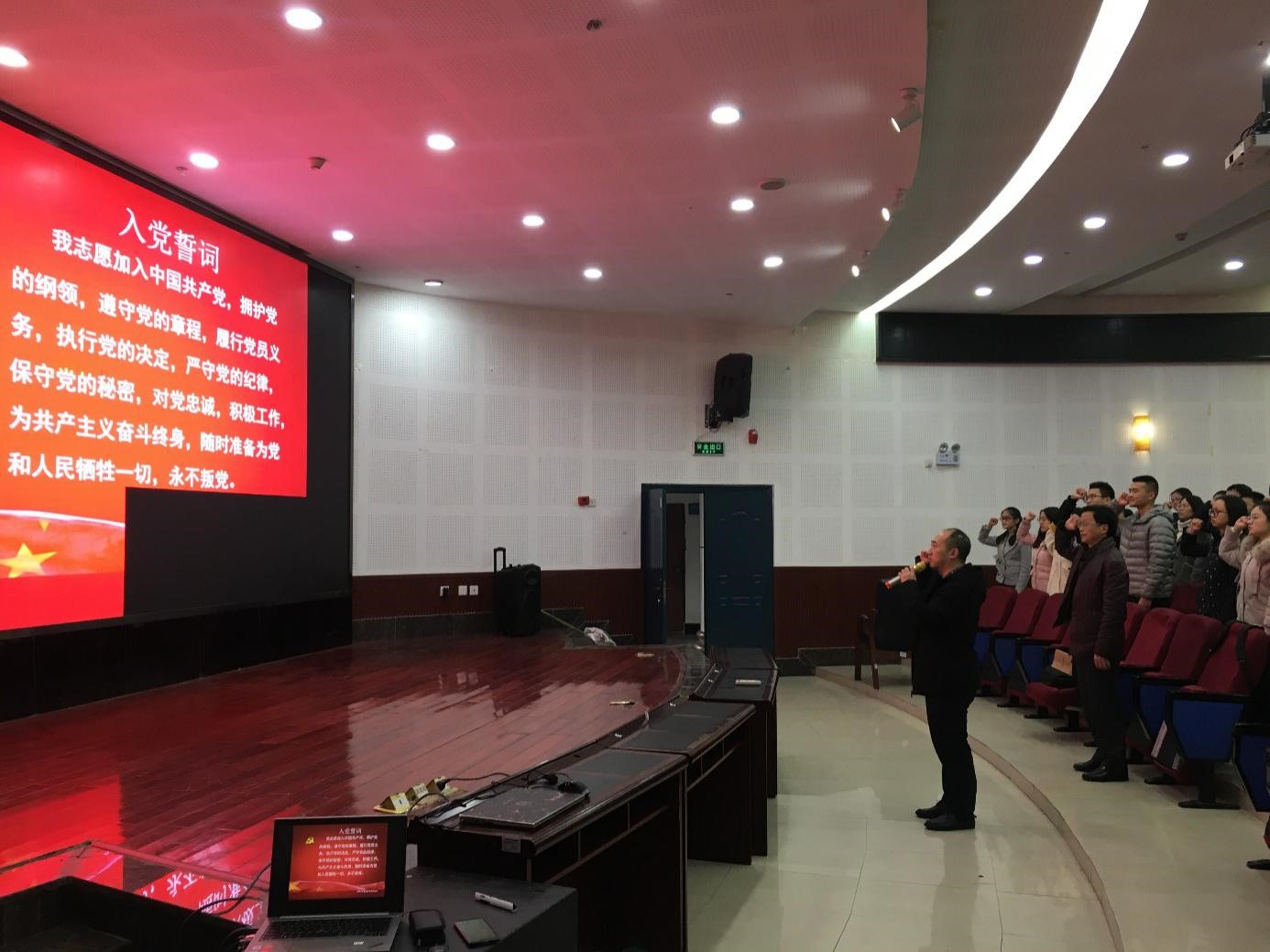 第二环节为新党员宣读入党誓词,老党员重温入党誓词。首先全体起立奏唱《国际歌》,随后意昂 副院长王勇同志带领全体党员庄严宣誓,铿锵有力的宣誓声响彻整个报告厅,庄重肃穆的宣誓,使每一位党员同志心潮澎湃,进一步坚定了为人民服务的立场信念。