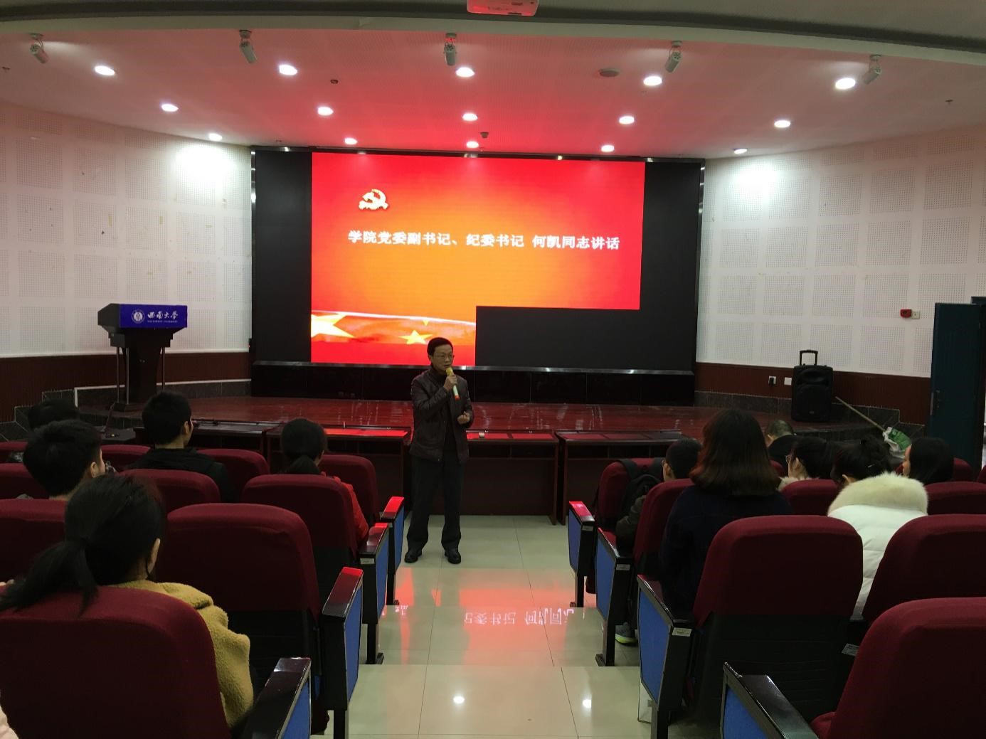 意昂体育 - 提供实时体育赛事资讯与投注分析 “不忘初心,牢记使命”主题教育活动系列之——“奋斗的我,最美的国”宣讲活动于2019年12月13日在意昂体育 101报告厅举行。出席本次活动的有意昂 党委副书记、纪委书记何凯同志,意昂 副院长王勇同志,意昂体育 全体学生党员、积极分子参加。