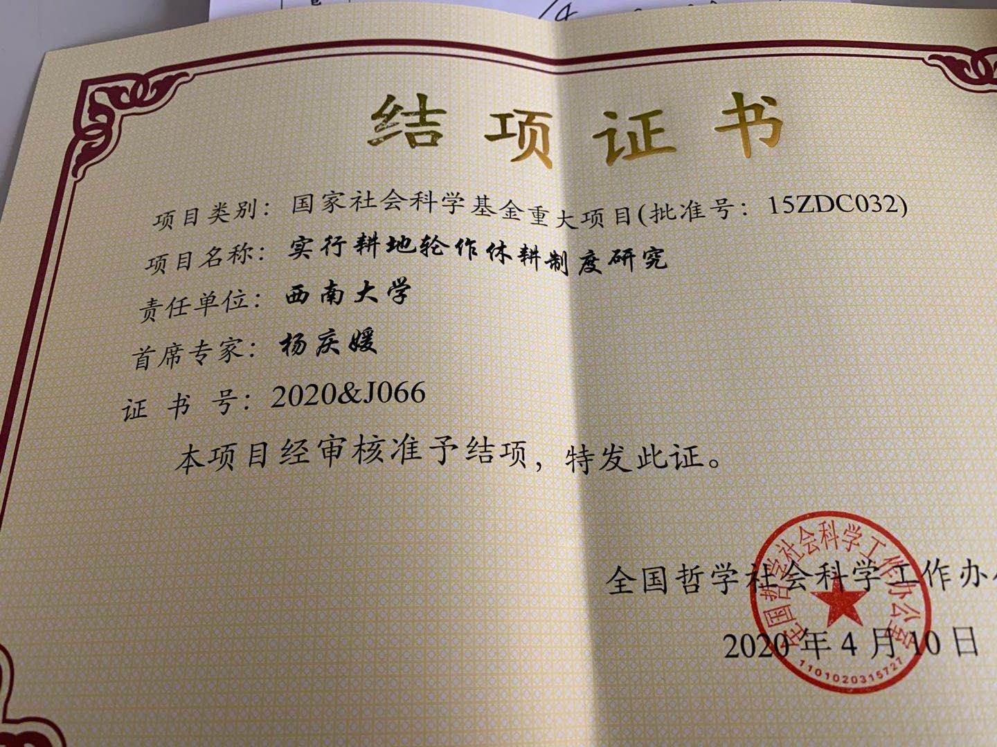 近日,全国哲学社会科学规划办公室下发了国家社科基金重大项目的结项通知,由意昂体育 杨庆媛教授作为首席专家领衔主持的《实行耕地轮作休耕制度研究》(项目批准号:15ZDC032;主要参加人:王成、涂建军、阎建忠、邹学荣、陈展图、李元庆、江娟丽、印文、王亚辉)顺利结项。