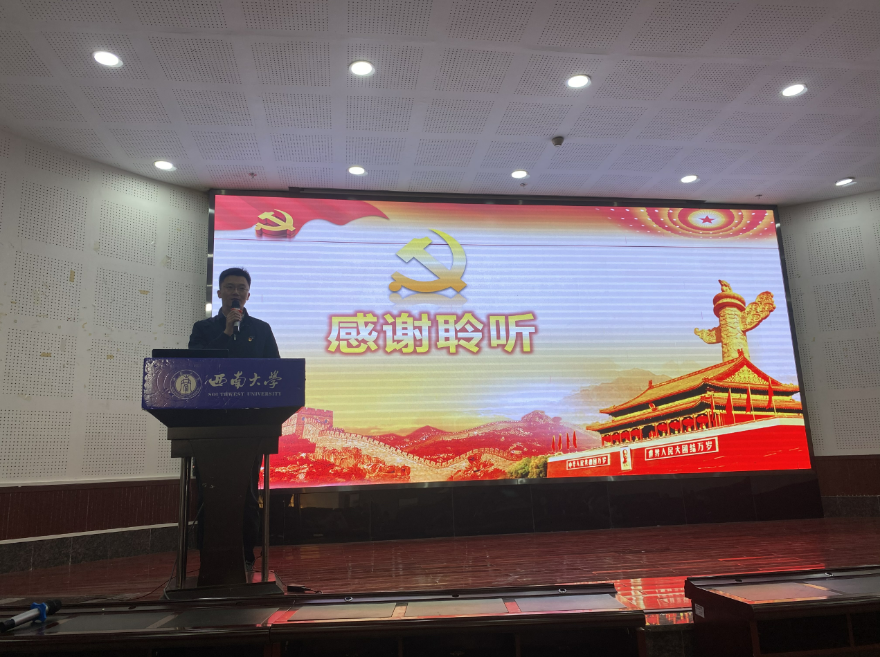 在交流环节,与会同志纷纷立足实际,就学习内容展开积极讨论。牟羿霏同志结合身边师生深入脱贫攻坚一线的经历,讲述了西南大学依托农业、教育、文化等学科优势,始终将扶贫工作作为光荣的政治任务和应尽的社会责任,把"输血与造血"结合起来,把科技支撑与人才支持结合起来,把扶贫与扶智结合起来,为国家脱贫攻坚与乡村振兴做出的贡献。作为西大学子,我们应为母校感到骄傲。侯腾轩同志则从坚持创新、科技自强的国家战略角度发言,作为青年大学生应紧跟时代大潮,发展自身的综合素质,努力向创新型人才转型,为国家的发展、民族的复兴贡献自己的青春力量。