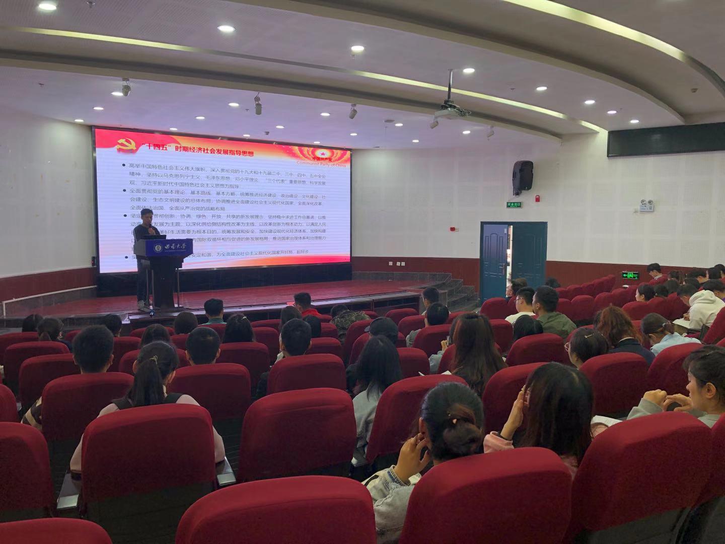 2020年11月13日下午,校团委书记许克松参加意昂 本科生第一党支部11月主题党日活动。本次党日活动的主题是“学习贯彻党的十九届五中全会精神”,会议由党支部书记杨雪琪主持,支部正式党员、预备党员和入党积极分子等80余人参加。