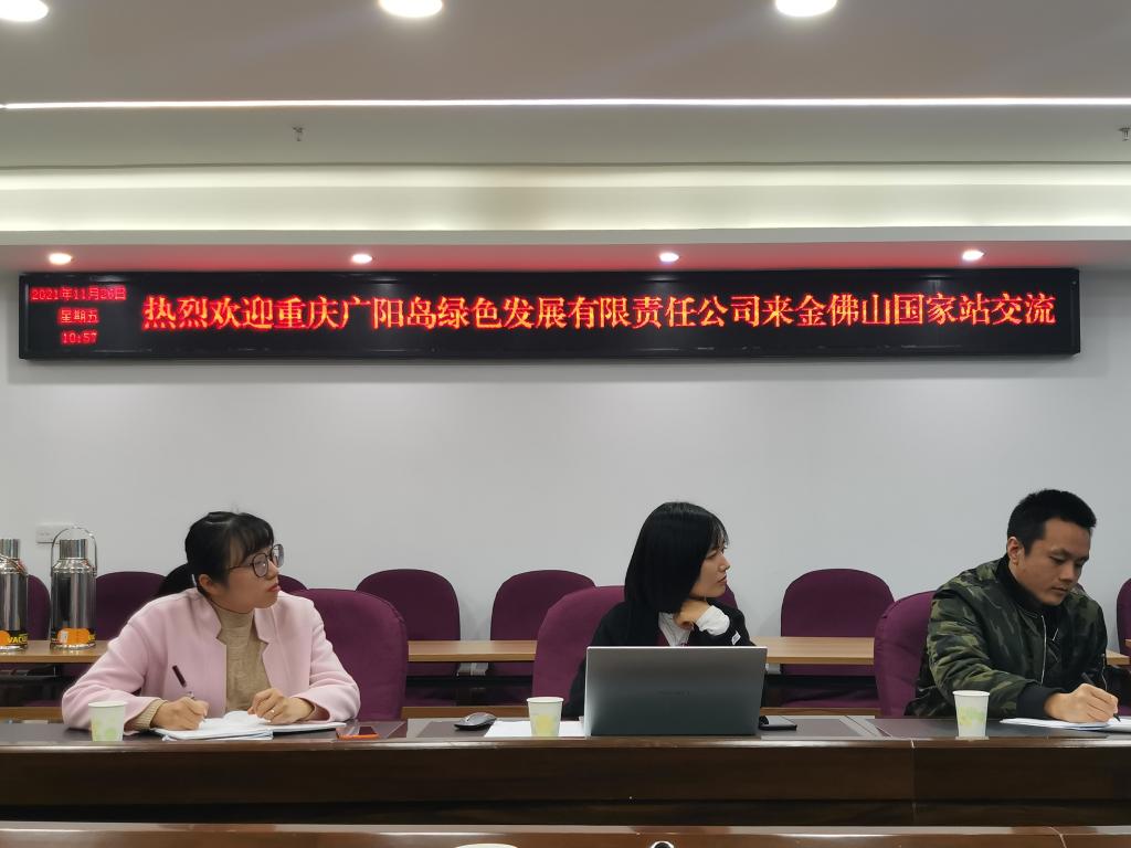 11月26日上午,重庆广阳岛绿色发展有限责任公司(以下简称广阳岛公司)综合部科长韩菲、智慧生态部彭璇及工程师姜毅一行莅临意昂体育 ,就野外科学观测研究站申报进行经验交流,金佛山国家站站长助理汤旭光教授、办公室主任李元庆老师及印文老师热情接待了来访一行。