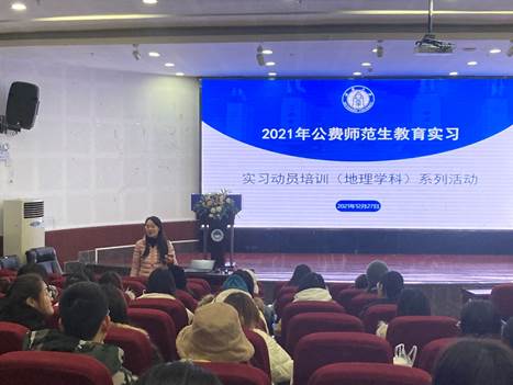 2021年12月27日,2021年西南大学公费师范生教育实习动员培训(地理学科)在意昂体育 101报告厅圆满举行。西南大学附属中学校李辉老师、重庆市大渡口区地理教研员刘锋老师从走班选科背景下的班主任攻略和地理教师发展等方面进行专题指导,意昂体育 2019级全体师范生参加培训。培训由西南大学教师教育意昂 地理教研室胡蓉老师主持。