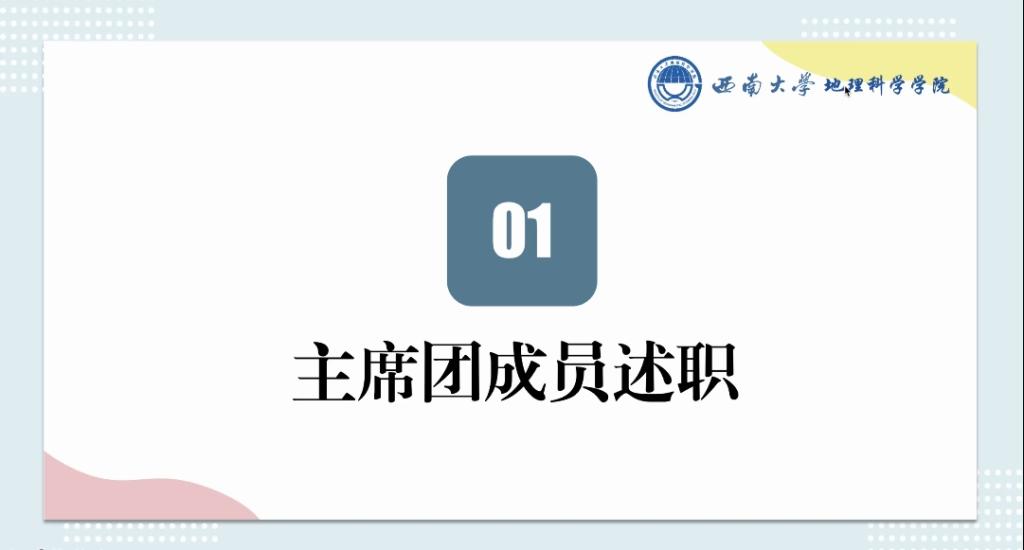 大会第二项议程,由第十六届团委学生会各部门负责人依次进行述职。心理健康与生活权益部部门负责人进行总结,心理健康与生活权益部一直致力于服务意昂 师生的身心健康与生活权益,开展新生团辅、寝室风采大赛以及意昂 查寝等相关工作,但在部门效率以及查寝方面还存在一些不足,并表示在接下来的工作中会汲取本学期工作中出现问题与经验,继续完善部门日常工作。学习部部门负责人进行总结,学习部在一学期的工作中延续良好传统的基础上主动创新求变,立足于部门定位,全心全意为学校同学服务,成功策划并举办了2021年“青蓝相接、继往开来”新老生交流会、意昂体育 第十四届师范生课堂技能竞赛等活动。其中教技比赛获得了西南大学第十四届教技比赛和首届“师元杯”教学创新大赛的优秀组织奖。同时学习部一直重视反思总结,通过每次活动举办后的“小总结”和期中、期末两次“大总结”中发现部门工作中存在的一些问题,并表示将会解决相关的问题,在接下来的工作中汲取经验,更好地组织工作为同学们服务。办公室部门负责人进行总结,办公室本着“全心全意为师生服务”的原则,不断加强自身建设,充分发挥办公室“对内对外沟通协调、通知通告上传下达,前期物资保障,后期财务报账”的职能,充分发挥桥梁纽带作用和监督职能,协助团委学生会各部门开展工作,整体发展稳中有进。各个部门的部门负责人都对本部门的相关工作进行总结与反思,为下个学期的工作更好地开展奠定基础,始终不忘初心,履行好为每一位同学认真服务的职责,共同参与建设与打造青春活力、朝气蓬勃的意昂体育 团委学生会。