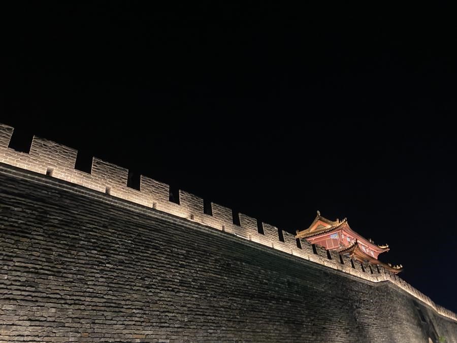 晚20:30,实习队伍前往襄阳古城(32.025°N,112.142°E),考察了襄阳古城的城墙和护城河,了解襄阳历史文化和三国文化,分析襄阳的城市规划和旅游发展。襄阳古城南跨汉沔,北接京洛,地处要冲,是历代兵家必争之地。襄阳城东、南、西三面修建的全国最宽的护城河和其北的汉江天堑,使其易守难攻,因此号称“华夏第一城池”。