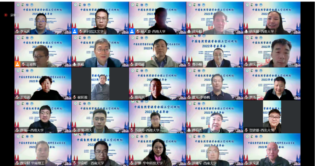 2022年11月19日,中国自然资源学会国土空间规划研究专业委员会主办,西南大学、自然资源部国土空间规划监测评估预警重点实验室、西南大学西部乡村可持续发展新文科实验室、重庆市规划和自然资源学会、重庆地理学学会联合承办的“中国自然资源学会国土空间规划2022年学术年会”以“云端”相聚、线上直播的方式成功举行。