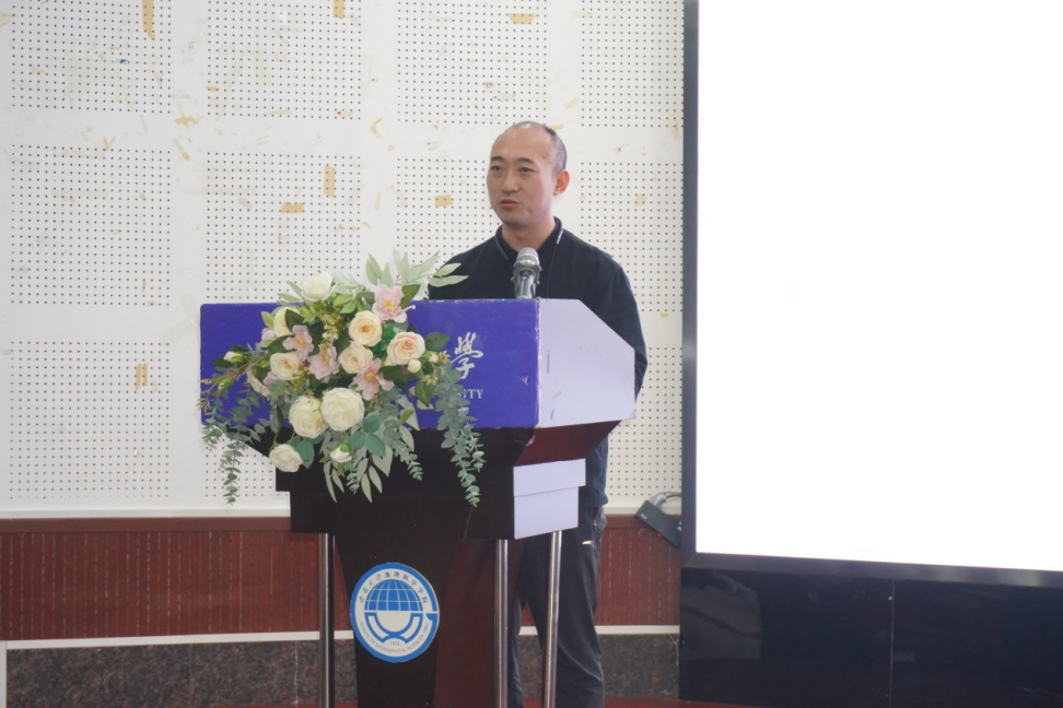 接着,融媒体中心顾问王勇副院长上台致辞。他高度赞扬了三大团队精心打造的活动、歌曲、故事音频等网络文化作品,对所有融媒体中心工作人员的工作成果致以最衷心的感谢。同时,他也对融媒体中心的工作提出了更高要求,给予了更多期望,他指出,要“打造有声音、有力量、有标志性的作品。从身边出发,关注同学,打造鲜活人物形象力求生动记录时事背景下的地科正能量、地科好声音,将地科之声唱得更响、更亮”。最后,他祝愿新一届融媒体中心能够“百尺竿头,更进一步”“踩在前人的肩膀上,看更远的世界”。 致辞后,各领导及指导老师为第二届融媒体中心工作人员颁发聘书并合影留念。