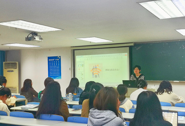 黄维老师介绍了网络文化的内涵,并对主流文化和非主流文化做了区分。她强调,大学生网络文化节则是指正能量的、积极向上的中华优秀文化。接着,从摄影、微视频、网文以及音频四大类进行阐释,就如何打造优秀的网络文化作品详细讲解,展示往届大学生网络文化节的获奖作品并深入浅出地分析了各个作品的特点,并从专业的角度为大家解读作品获奖原因。