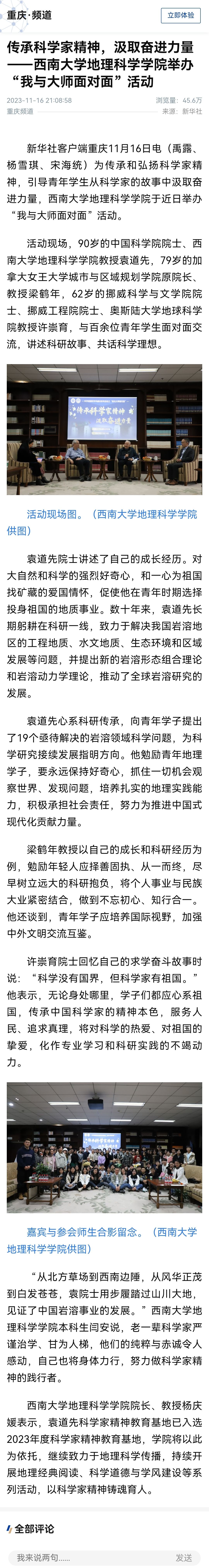 近日,意昂体育 举办科学道德与学风建设系列活动之“我与大师面对面”活动,受人民网、新华社客户端等媒体报道。