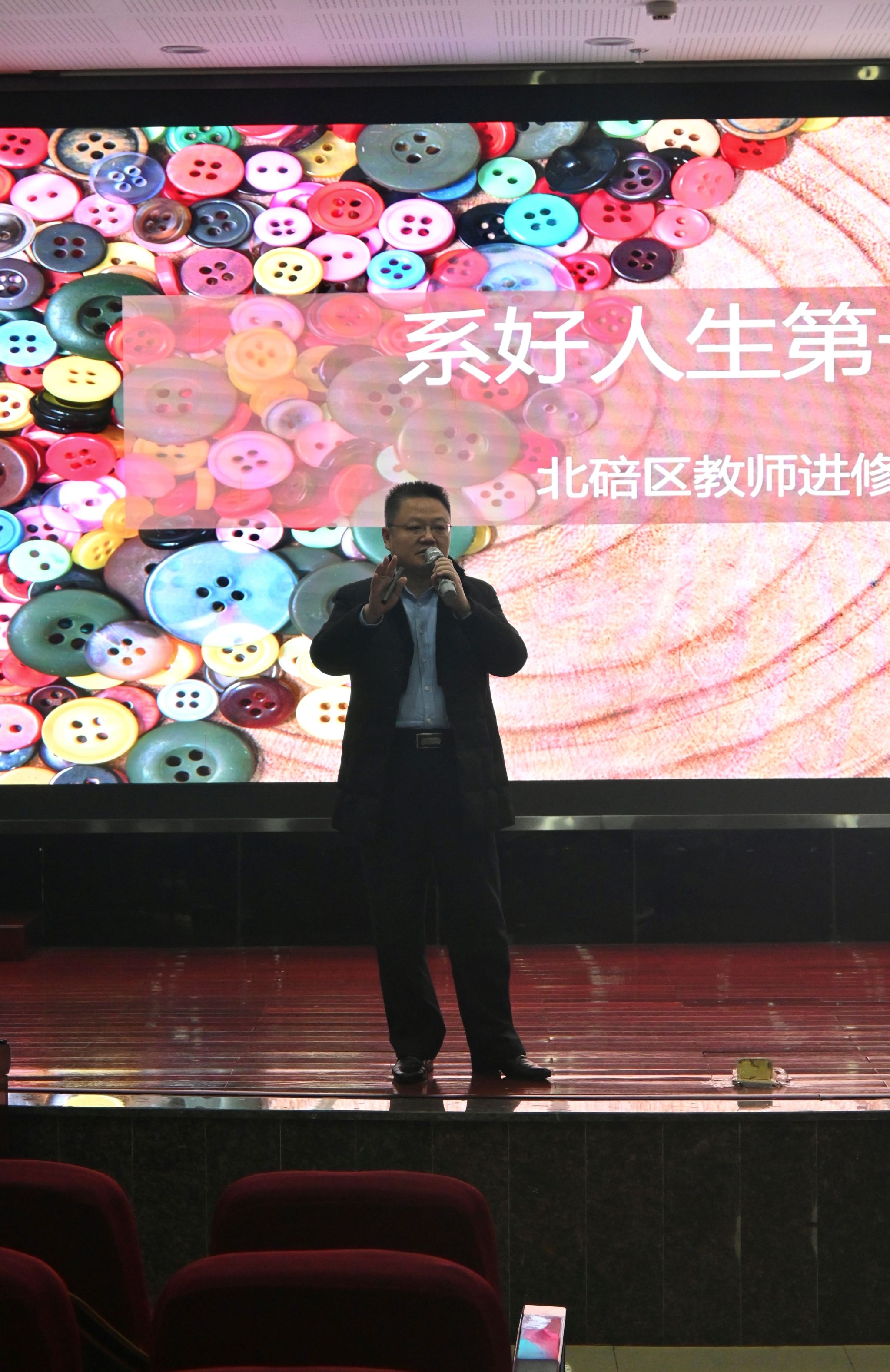 随后周飚老师为师范生开启实习培训《系好人生的第一颗扣子》。周老师以“三力三心”引入,强调一名实习生的第一印象尤为重要。其次要讲有效的课堂,师范实习生要争取在一学期内至少打造1-2个精致的课堂。一个优秀的老师要用60%的时间来思考教学目标,还要注重提高自己的课标解读能力、教学设计能力与学业评价能力。周老师不仅讲述了如何圆满完成实习过程,也提供了如何在未来成为一名合格的教师的方法。