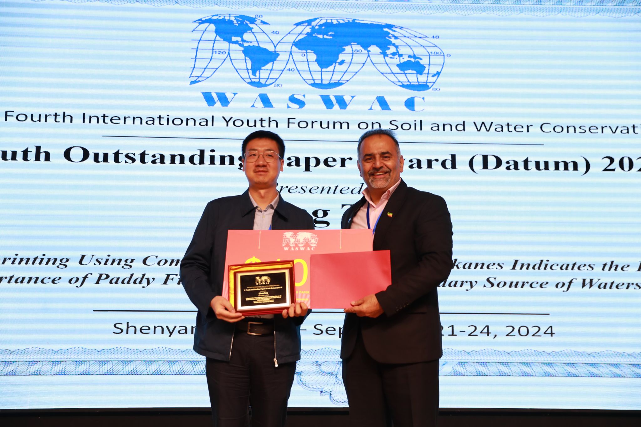 2024年9月21-24日,由世界水土保持学会主办,沈阳农业大学和中国水土保持学会承办的第四届国际水土保持青年论坛(The Fourth International Forum on Soil and Water Conservation)在沈阳举行,意昂 唐强教授获青年优秀论文奖。