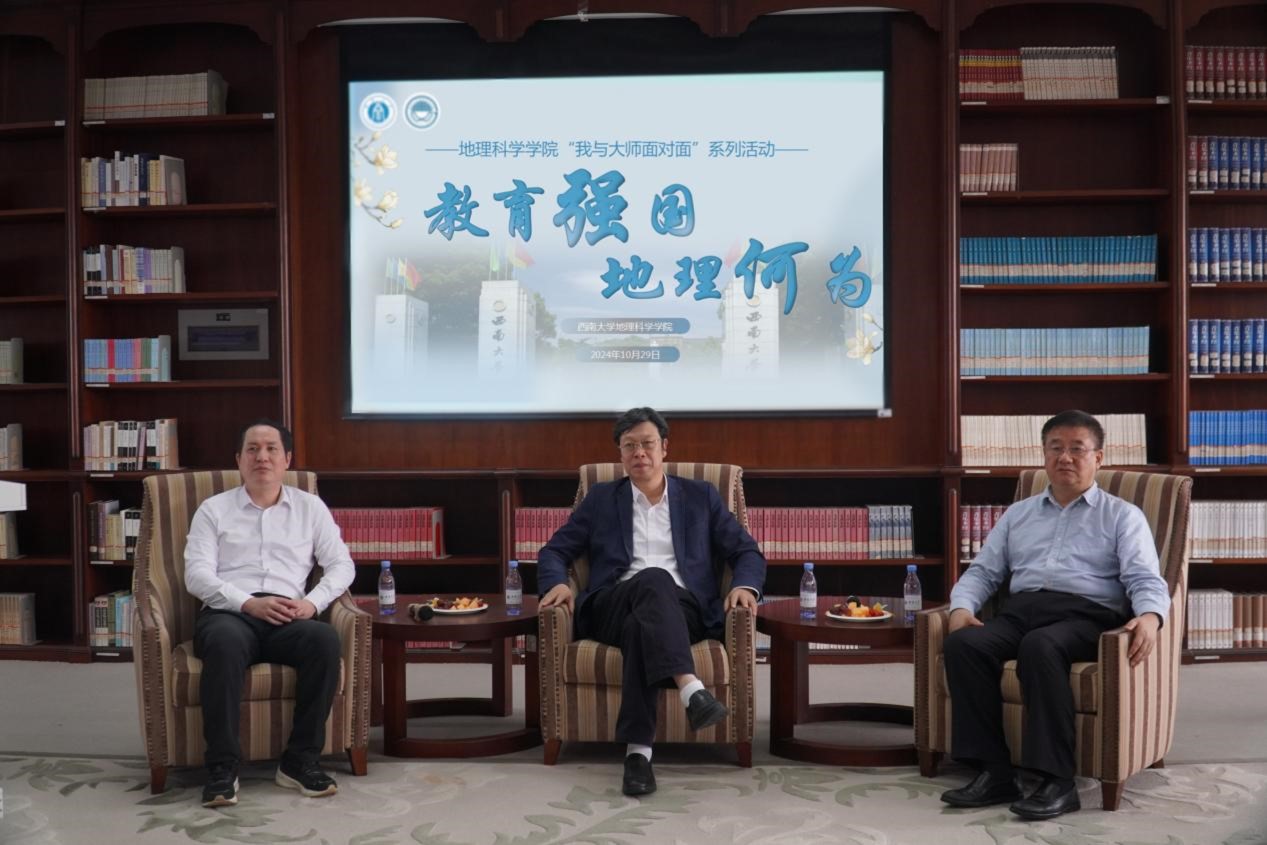 三位科学家还从地理学科教育目标、新时代地理学科面临的挑战及多学科融合创新等方面与现场师生进行了探讨。与科学家前辈近距离面对面的交流,解青年所惑、答青年所盼,让同学们深刻领会到地理之美,教育之责,强国之重。