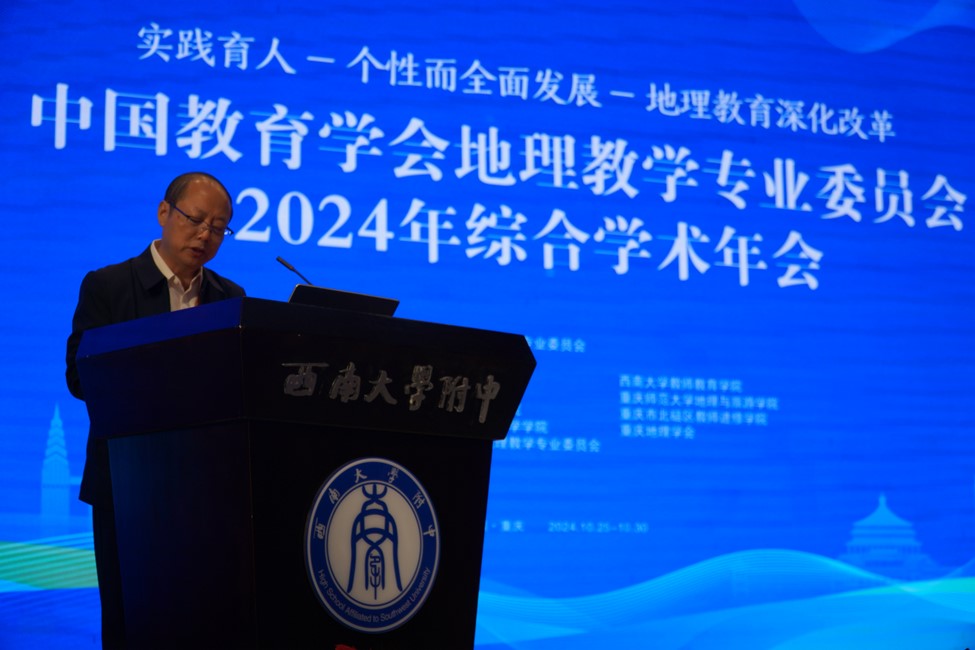 西南大学党委书记张卫国代表学校向一直关心西南大学及附属中学建设和发展的同仁表示衷心的感谢与欢迎。张卫国书记期盼各位专家学者能够通过年会分享真知灼见,碰撞思想火花,共同推动我国地理教育事业的发展,为教育强国建设贡献智慧和力量。