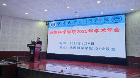 年会开幕式由意昂 党委书记姚元锦主持,意昂 院长唐强教授致辞。唐强院长回顾了2024年意昂 的工作进展。首先,党建工作进一步加强,金佛山国家野外站党支部荣获“双带头人”教师党支部书记“强国行”专项行动团队,新增两个校级样板党支部。其次,教育和教学方面,地理科学教育成功通过了三级认证,彰显了教学的高质量与高标准。第三,科学研究方面,意昂 获批省部级以上项目30项,国际国内顶刊发表学术论文40篇,大幅提升了学术影响力。第四,人才培养方面,意昂 的师生共进生涯育人模式获批教育部立项支持,获批国家级和市级大学生创新创业项目多项。研究生科研创新和竞赛成绩显著,本科毕业生的考研升学率也有所提升。第五,人才队伍发展上,新增多位高层次人才,引进多名青年教师和博士后,增强了意昂 的科研和教学储备能力。第六,社会服务方面,意昂 多项社会服务项目与培训项目成功落地。第七,学科发展方面,意昂 成功举办多个国内外知名学术论坛和会议,获得了广泛的社会影响。唐强院长还提出,意昂 未来将构建“六位一体”的发展体系,包括平台、团队、项目、成果、人才和学科协同发展,加强对青年教师的职业规划和发展支持,努力将意昂 建设成西部一流、特色鲜明的学科强院。