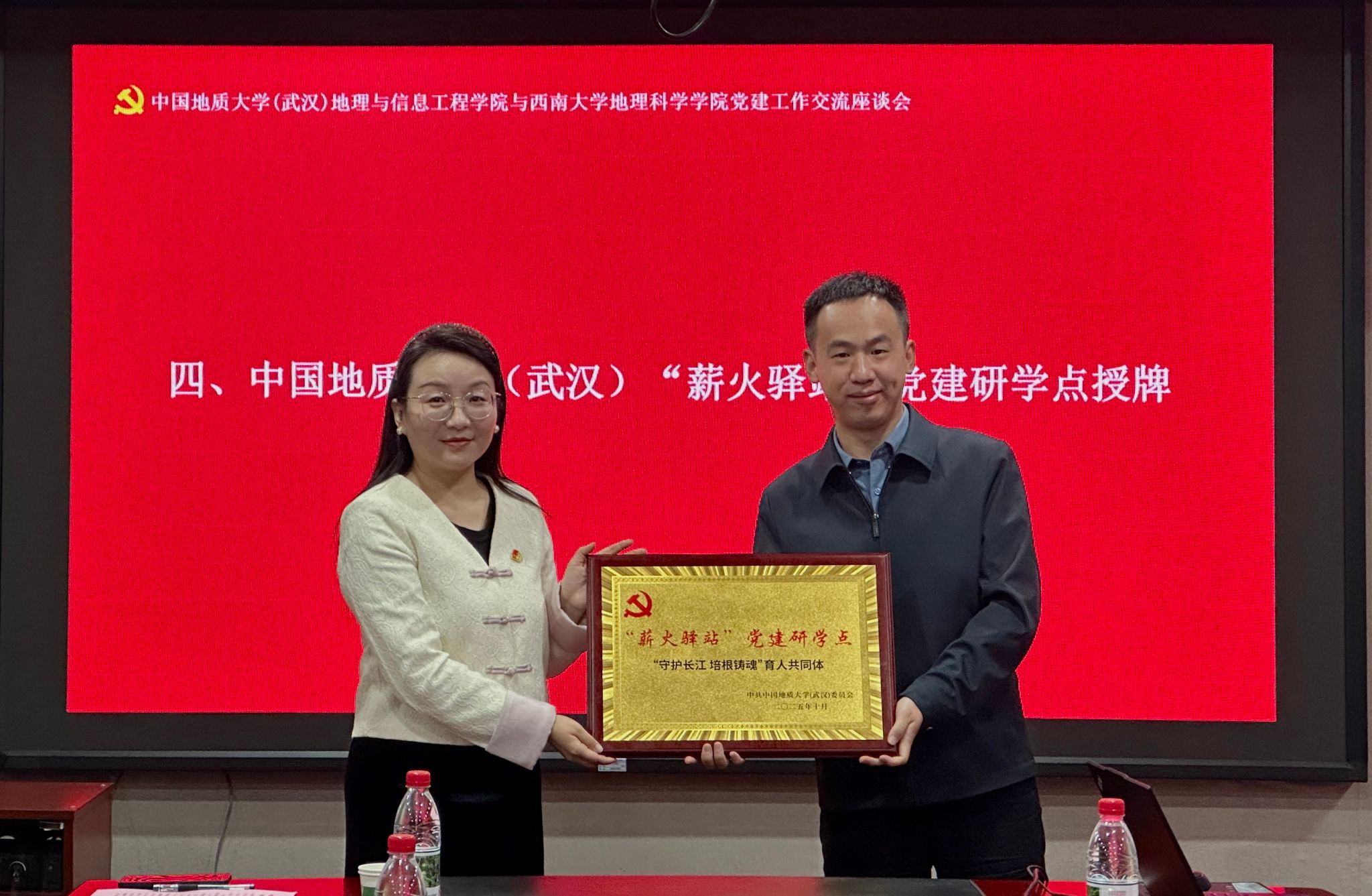 会议期间举行了授牌仪式。中国地质大学(武汉)地理与信息工程意昂 向意昂体育 - 提供实时体育赛事资讯与投注分析 授予“薪火驿站”党建研学点称号,意昂体育 - 提供实时体育赛事资讯与投注分析 授予对方“党建联盟”称号。最后,与会人员聚焦党建工作、学生工作、党务工作队伍建设等相关议题展开探讨,现场气氛热烈,交流成果丰硕。