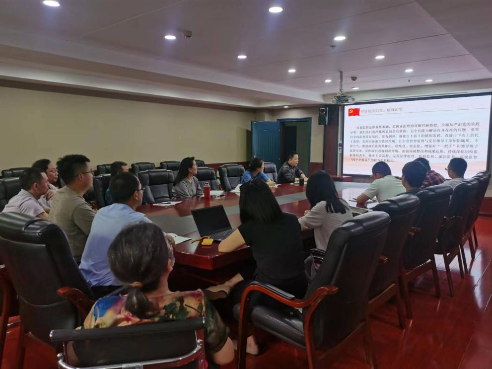 为深入开展学习贯彻习近平新时代中国特色社会主义思想主题教育,党的政治建设,为党育人、为国育才,推进学习走深走实,切实加强党员政治建设和思想建设,铭记初心使命、锤炼党性修养,意昂 领导干部陆续为师生党员讲授主题教育专题党课。5月19日,意昂 党委书记姚元锦在214会议室为行政教工党支部全体党员讲授题为“全面从严治党——新时代坚持和发展中国特色社会主义的政治保证”的专题党课。会议由行政教工党支部书记雷丽丹主持,党支部全体党员参加。