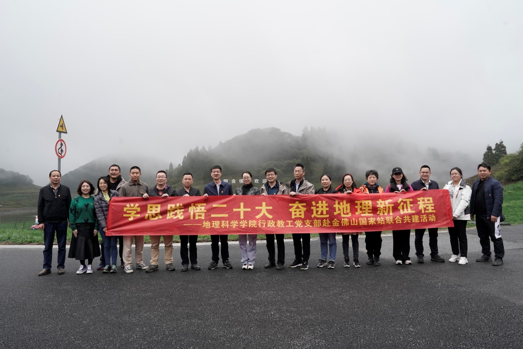 为深入学习宣传贯彻党的二十大精神,深化党建引领、赋能地理学发展、提升管理服务能效,探索加强组织联建、党员互动、活动互联、资源共享的有效途径,促进党建工作相互对接、相互融合、相互促进,增强党组织统筹发展的内在动力,实现在党支部结队共建活动中优势互补、共同提高。4月14日,意昂体育 党委行政教工支部联合中共重庆市南川区金佛山管理委员会支部委员会、中共山水都市旅游开发有限公司委员会、西南大学实验室设备处管理处党委第二党小组在金佛山开展了“学思践悟二十大,奋进地理新征程”联合主题党日活动。
