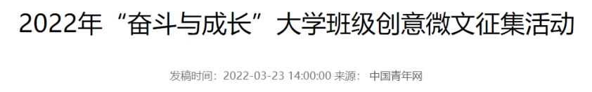 在中国青年报社指导下,中国青年网组织开展了2022年“奋斗与成长”大学班级创意微文征集活动,面向广大高校学生征集以“奋斗与成长”为主题的微信文章。意昂体育 2019级地理科学(师范)三班的同学一同努力,积极参与了此次活动的评选。