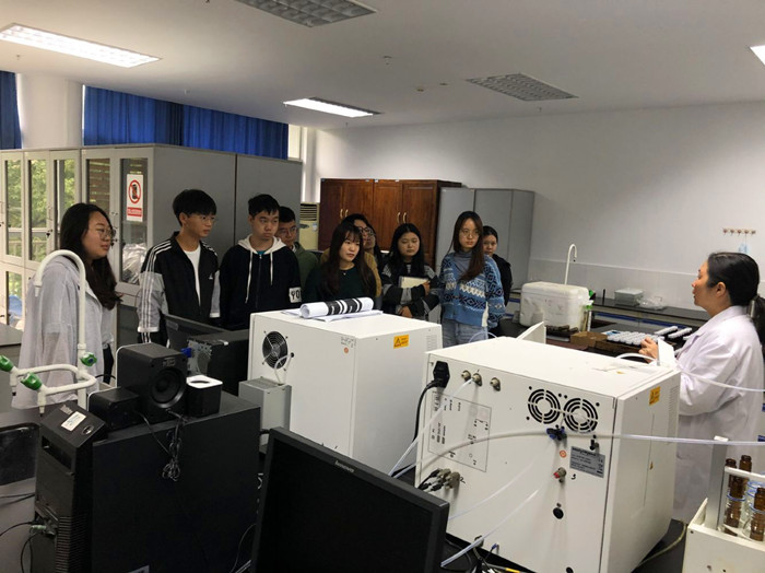 活动共分为四个方面,首先由支部党员潘进疆从实验室废弃物处理、急救应急措施、个人防护方面做了安全准入培训。随后,孙玉川就实验常见玻璃器皿使用技巧及清洗做了详细的讲授。接着,意昂 党委书记喻尚其以“同学们,进实验室第一件事是做什么?”的问题引入,活跃了现场气氛,并从实验室建设、实验室环保、实验规范习惯方面同与会同学进行了深入的交流。最后,支部组织研究生们进入实验室,实地参观学习了气体同位素质谱仪、高分辨率磁质谱、阴离子色谱、碳氮元素分析仪。支部党员贺秋芳、雷丽丹、刘川对以上仪器的工作原理、操作规范、数据分析、新技术开发方面做了详细的讲解。