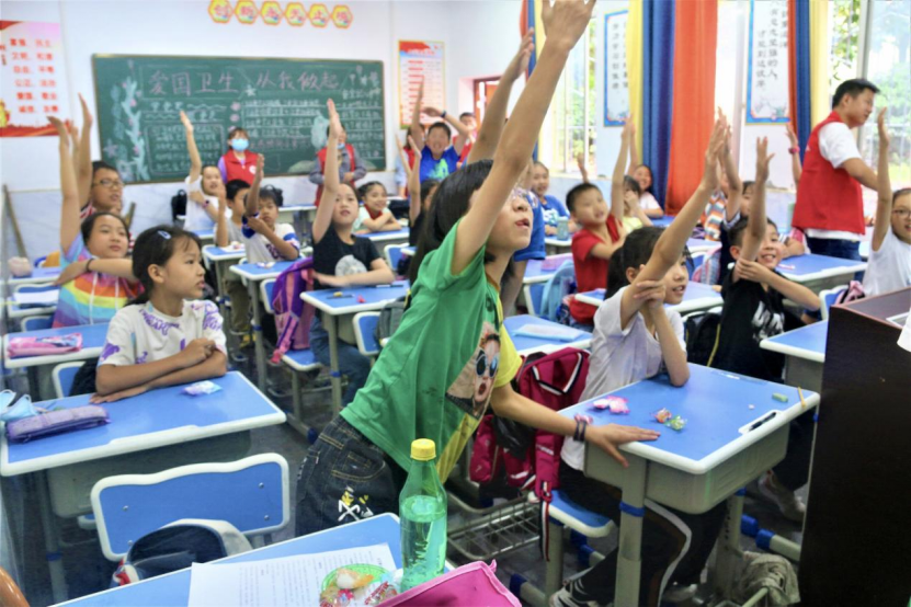 在学校老师的带领下,志愿者们来到天生桥小学五年级一班和二班。讲师志愿者通过让小朋友们对生活中常见的垃圾尝试进行垃圾分类、有奖问答等方式,鼓励小朋友们踊跃参与,大胆阐述,激发同学们对于垃圾分类的好奇与兴趣,带领同学们一起了解垃圾分类和环境保护的重要性,在探索的过程中增强课堂的参与互动,潜移默化地播下保护环境、节约资源的种子。