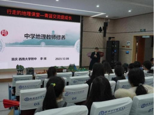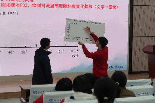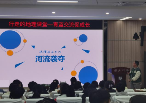 活动伊始,由西南大学附属中学校地理组的舒茂老师和郭锐老师分别进行《城镇与乡村的景观特征及其变化——以北碚为例》《大气垂直分层》课例教学展示。