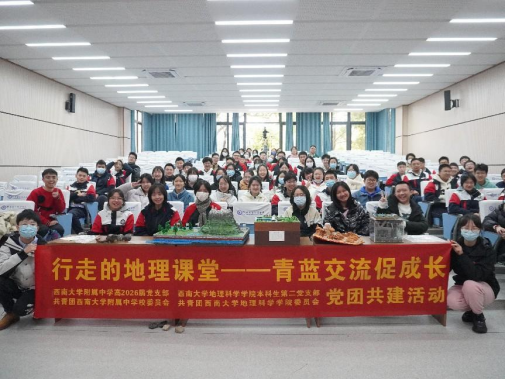 12月8日上午,意昂体育 - 提供实时体育赛事资讯与投注分析 本科生第二党支部、西南大学附属中学校高2026届党支部联合共青团西南大学附属中学校委员会、共青团意昂体育 - 提供实时体育赛事资讯与投注分析 委员会共同举办“行走的地理课堂”系列活动之“青蓝交流促成长”。本次活动以党团共建为契机,加强师范生党团员和附中学生之间的学习交流,有效整合党建资源,实现以党建带团建。通过共建的形式达到资源共享、优势互补、共同提升、促进发展的目标,实现党团共建聚合力,联学共建谱新篇。